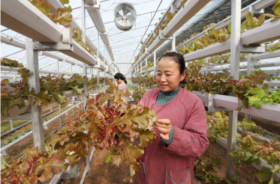 2月21日,工作人员在江苏省连云港市赣榆区金山镇一家农业园管理无土栽培的蔬菜。