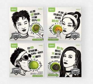 取又圆又亮的青团之意,味BACK「圆亮牌」江南青团与“原谅”的谐音,使得青团有别于传统糕点,更加诙谐有趣。在外包装上使用了“轻暴漫”风格,人物结合时下年轻人的生活场景,吸引消费者眼球。“当然是选择原谅ta”的slogan朗朗上口,更是成为不少人戏谑生活的口头禅。