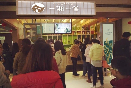 在当下饮品品牌风格千篇一律的洪流之中,一期一笑独出心裁,店面装修采用日式原木风格设计,浓郁精致的和风日式元素与整个品牌的清和茶之道定位相呼应,搭配原木色日式隔墙,让消费者有切身的体验强烈的日式风格,置身其中给人一种冬日暖阳的温暖感。