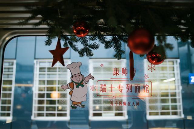 试想一下这个画面:2018年和2019年新旧交合之际,在瑞士被称为传奇列车的红箭丘吉尔(The Red Arrow Churchill)专列上,当列车穿梭在风景如画的瑞士旅行时,年轻老外们正坐车厢里一家来自中国的列车面馆里用正统的西餐厅礼仪、佐以瑞士本地美味小食享用着一碗远道而来——康师傅高端方便面。