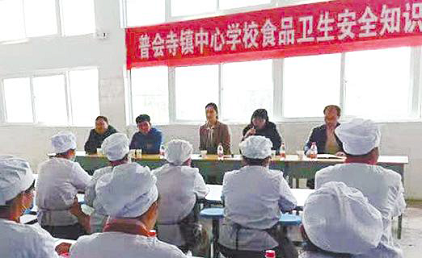 虽然学校配备的有专职的食品安全员,但普会寺镇中心小学校长李秀云总会在食材入库前赶到食堂,与食品安全管理员一道对食材的质量、数量、票证进行逐一的检查、称重、核对,并建立完备的记录台账。食材加工期间,她也会时常双手消毒、戴着口罩跨过近40厘米的挡鼠板,走进后厨,查看后厨卫生环境、食材储存和加工情况。因为她清楚地知道,自己已经被明确为该校的食品安全第一责任人。