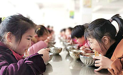 学生们在津津有味地吃营养午餐