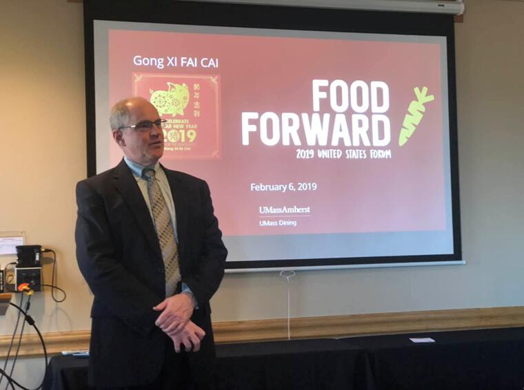 2月6日上午,抵达Amhurst麻省大学。副校长Andrew Mangels介绍到,麻省大学五所校区第一,最大的就是这个Amhurst校区,也是新英格兰地区最大的研究型大学。学校有3万余名学生,70%的学生说他们申请这所大学的一个重要原因是这里的学生食堂排名全美第一。麻省大学是连续三年获得全美大学餐饮质量第一的院校,学校在食物多样性、本地化、健康食物教育和健康食物研究方面已经做了12年,麻省大学有专门的中餐窗口,为解决中餐食材问题,他们请本地农民专门种植中国食材。他们认为食物不仅仅要好吃、健康,而且要符合环境的可持续。大学校园对于学生的食育作用非常关键,因为大学新生大部分都是第一次离开父母,需要开始学会自主选择食物。所以好的大学餐厅至关重要,能够帮助年轻人养成好的饮食习惯,并因此受益一生。麻省大学着重购买本地的食材,来支持当地的食物系统。