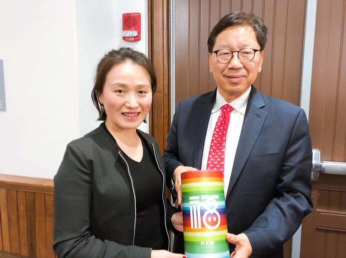 耶鲁新年盛宴共有以亚裔为主的240位师生参加,采用桌餐的形式,晚宴前耶鲁为大家安排了一场富有浓郁中国传统文化的舞狮表演,一桌其乐融融的年夜饭也让在场的所有人感受到了来自家乡的浓浓新年味道。次日,良食代表团参观了解了耶鲁餐饮的规模及运营模式,耶鲁可持续食物推广的理念和方法及其本地化的推广实践与社区沟通。欣和将代表中国有机酿造行业最高标准的欣和禾然有机调味品赠与耶鲁餐饮及后勤主管Rifa,并进行了深度的沟通讲解,得到了Rifa对欣和禾然有机以至中国酿造科技的赞赏。