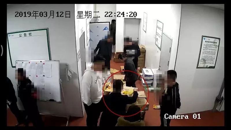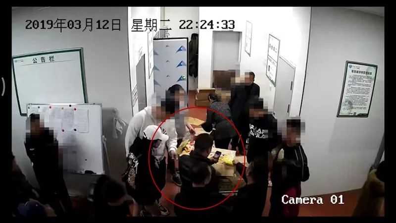 冻库外侧过道的监控显示,21时08分第一批十余名家长出现在了画面中,搬运的工作人员被挤到一旁。家长们,拍照、进出冻库、撕开包装。