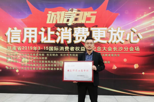 3月15日上午,为深入贯彻《中华人民共和国消费者权益保护法》、《湖南省消费者权益保护条例》,宣传2019年消费维权年主题,营造安全放心的消费环境,“湖南省2019年3·15国际消费者权益日纪念大会(长沙分会场)”在长沙市岳麓区举行。