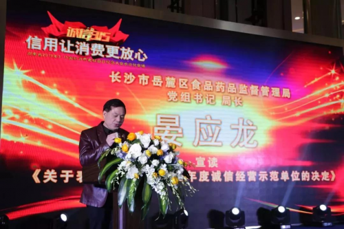 活动现场,长沙市岳麓区食品药品监督管理局党组书记、局长晏应龙宣读了《关于表彰2017-2018年度诚信经营示范单位的决定》,俏皮羊生物科技有限公司等6家优秀企业获评2017-2018年度“诚信经营示范单位”荣誉称号。