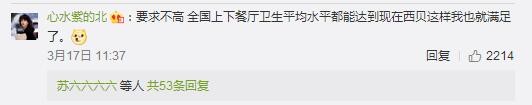 舆论并非“一边倒”,有网友对此表现出了“宽容”的态度。@鹅鹅鹅养鹅表示,“没洗干净确实有点管理不到位,但是吹毛求疵就算了吧!”,@lu叔系我称,“突击检查是这样的状态还想怎样,分分钟比自家厨房干净!”网友@心水紫的北一条“要求不高,全国上下餐厅卫生平均水平都能达到现在西贝这样我也就满足了”的评论获得了两千多的点赞数。