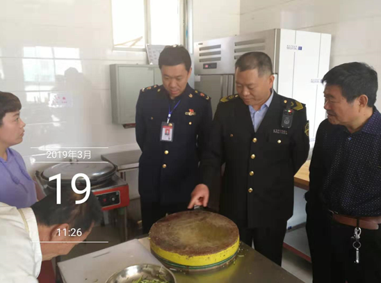 “食品安全重如山,点点滴滴无小事。凡事预则立,不预则废。”在对校园食堂检查过程中,郭胜超局长提出了三点警示意见:一是学校负责人要强化对校园食品安全的管理,严格落实各项制度规定。二是要认真抓好重要环节,消除食品安全隐患,完善食品原料索证索票进货查验制度,严禁“三无”食品进入学校食堂。三是督促学校通过板报、电子屏等多种形式对广大师生进行食品安全知识的宣传,提高食品安全意识。