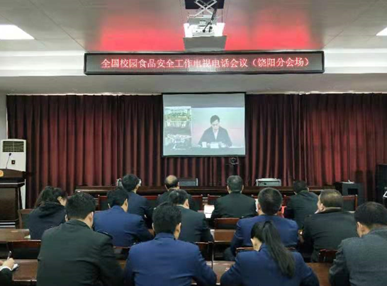 图为饶阳县市场监管局干部收看收听全国校园食品安全电视电话会的情景