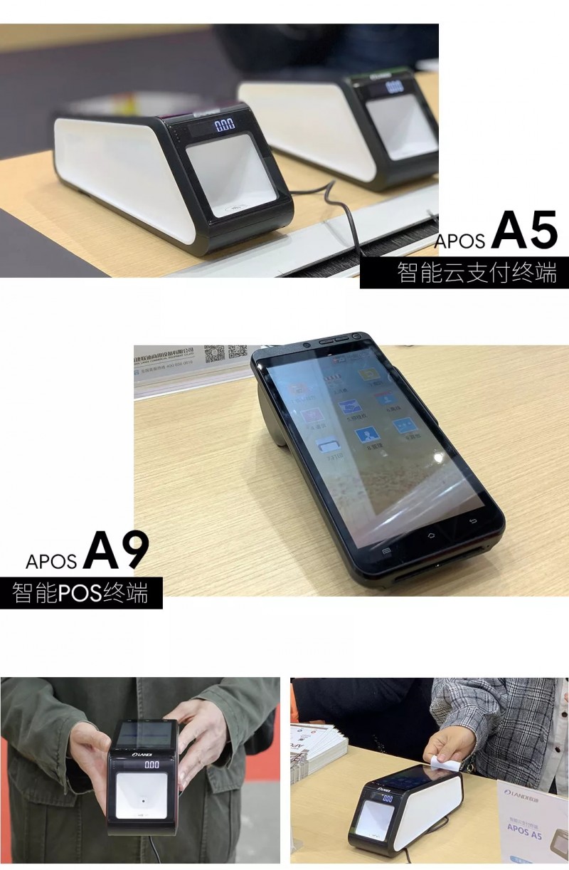 智能台式终端APOS A9,7寸高清大屏,集全支付、多应用、易管理于一体;智能自助终端ACM S3,可满足便利店、餐饮行业“新零售”自助应用;无线POS支付终端QM90,扫码支付、非接、刷卡、插卡支付于一体,可满足小额扫码支付与大额刷卡支付需求。