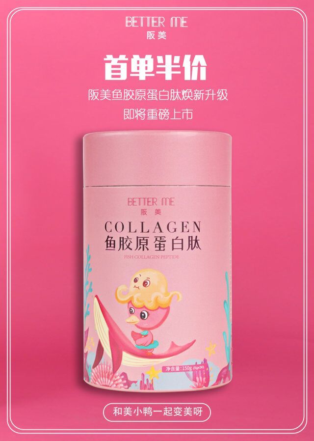 为帮助更多爱美女生做好内调保养。一直致力于纯胶原蛋白肽领域的阪美BETTER ME,重磅升级企业形象“美小鸭”的同时,推出“黄金比例”鱼胶原蛋白肽,帮助爱美女性抗初老。