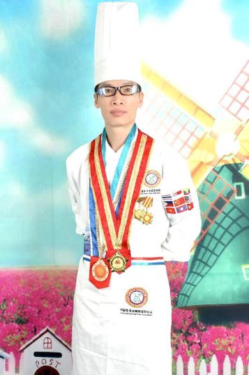 中国烹饪大师、养⽣⼤师、养⽣健康菜形象大使、德国皇朝餐饮集团出品总监、德国皇朝餐饮集团(斯图加特)行政总厨、中国名厨美食联合会副主席、中国名厨美食联合会驻德办事处主任