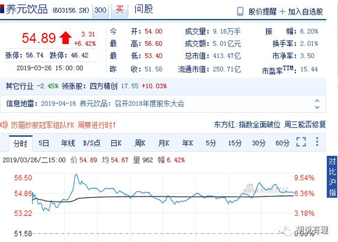 值得注意的是,今天大盘大跌股指纷纷走低,而养元饮品逆势大涨!