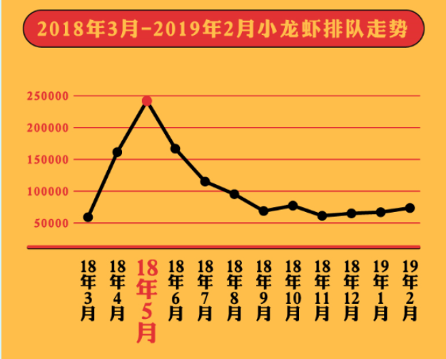 数据显示,3月过后,小龙虾的排队量直线上升,5月份达到全年小龙虾排队量的最高峰,虽然大家都把小龙虾和夏天划等号,但是春季新鲜的小龙虾刚上市,大家已经迫不及待品尝这等了一整个冬天的美味。这个时候的小龙虾,虾肥肉美,个大膏黄,正是端上餐桌的好时机,吃小龙虾不一定要等到夏天,趁着新鲜,春季里第一口的小龙虾,还不赶快去品尝!