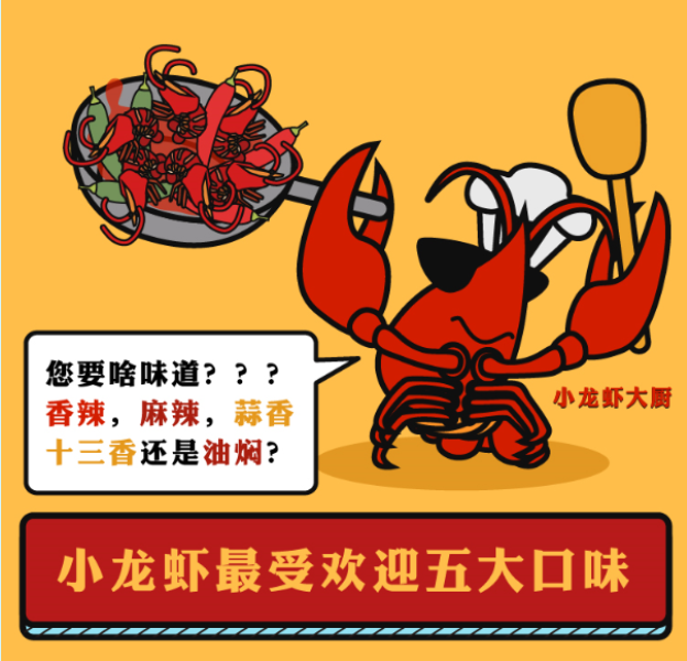 小龙虾火,和小龙虾有关的产品同样也火,小龙虾月饼,小龙虾馄饨,小龙虾生煎……各种菜品创意迭出,借着小龙虾的东风着实火了一把。随着市场的增长,不少商家也在小龙虾的口味上做起了文章,咸蛋黄小龙虾、芝士小龙虾、卤味小龙虾……花样百出,不过根据美味不用等数据报告显示,香辣,麻辣,蒜香,十三香,油焖这五种传统口味还是牢牢占据着吃货的心,成为小龙虾餐桌上的常客,看来创新虽好,传统地位也是不可撼动。