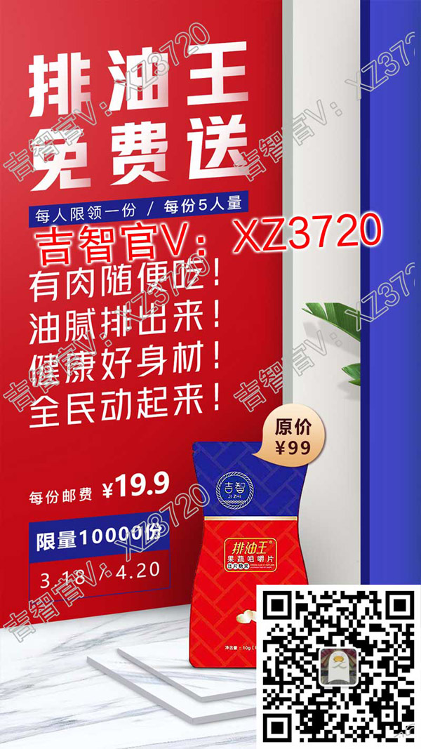 随着物质生活的提升,人们从怎么吃得好转变为如何吃得健康,大健康时代下,大家都担心吃得过油腻,营养过剩导致自己肥胖,身体健康,越来越受到重视,生怕自己的身体素质越来越低,重视健康是好事,但是,通常防止自己长肉的方法都是管住嘴,迈开腿,能在美食面前把持住的人少之又少,大家都希望能有肉随便吃,火锅随便涮,烤串随便撸,吃肉就不长肉的体质,在了解吉智排油王之前,我也是这么想的,有这种体质就能吃遍天下美食,而且还能保持一个健康的身体,现在呢,针对这个蓝海市场,广药大健康开发出了一款能让你随便吃还不长肉的产品,就是吉智排油王,针对大家的饮食恐惧市场而研发,能解决85%的减肥健身者最大的烦恼,想吃不敢吃怕油腻怕脂肪,吉智排油王的口号就是怕油腻,嚼两粒。吉智官V:xz3720