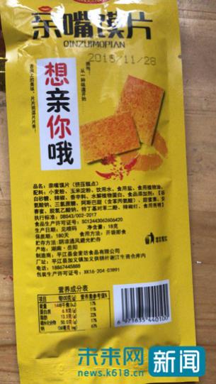 王云向记者展示了几款在同学中最受欢迎的辣条:有请明星代言的郑州佳龙食品有限公司生产的“台式素香肠”;有安徽肥东县天天旺食品厂生产的“熊大熊二”;还有来自湖南岳阳平江金麦坊食品有限公司生产的“亲嘴馍片”……7袋辣条,王云共计花费3.5元。