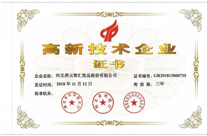 近日,六个核桃母公司养元饮品(以下统称“六个核桃”)继2018年业绩双线飘红后,再次传来捷报。公告显示:公司收到河北省科学技术厅、河北省财政厅、国家税务总局河北省税务局联合颁发的《高新技术企业证书》,证书编号为GR201813000735,发证时间为2018年11月12日。六个核桃研发实力再添权威标签。
