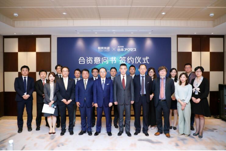 株式会社日本ACCESS社长佐佐木淳一(左)与易果集团联合创始人兼联席董事长金光磊(右)在现场签署合资意向书