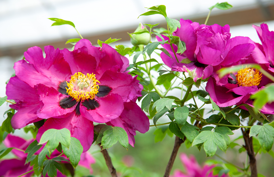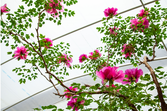 牡丹花花色端庄,雍容风雅,品种多样,其中,作为牡丹珍惜品种之一,紫斑牡丹也极具观赏性,在江苏伊例家有限公司的花园式产业园内,就有万株千年紫斑牡丹争香斗艳。