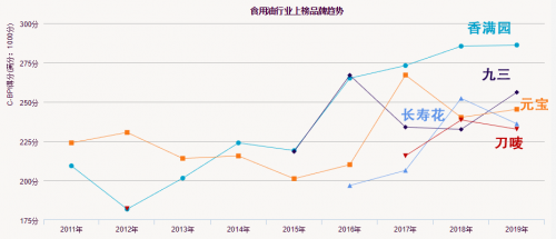 除金龙鱼外,益海嘉里集团旗下的胡姬花、香满园、元宝、口福等食用油品牌同样榜上有名。其中,胡姬花位列食用油品牌力指数榜单第四,香满园、元宝、口福的品牌力指数也呈现持续上升趋势。