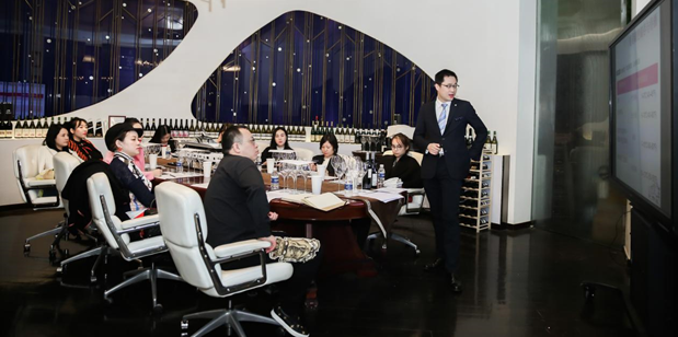 在侍酒师张聪的步步指引下,各位学员对葡萄酒的基本构成要素形成了初步的认知,从而可进行系统的判断。