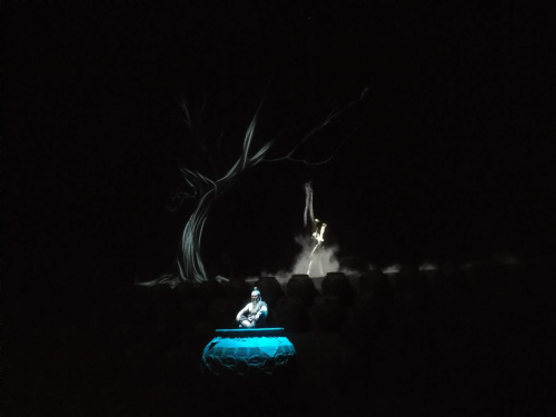 《天酿》用天赐、天遇、天路、天启、天宴五个场景,讲述了酱香酒勾酒师酉酉终其一生追求极致酿酒工艺的匠人精神。随着红色幕布的层层拉起,观剧者随着“酿酒师们”亦步亦趋,恍若进入极幻之境,看见了经历四季轮回童颜变老朽的酉酉、闻到了天赐佳酿的酱香,见证了以酒为媒的爱情传奇。360度的沉浸式体验,带来的不仅仅是视觉上的震撼,更体现了酿酒师们对品质的坚守。酉酉的独白仿若一道道闪电直击观者心灵“人生何尝不是自我“酿造”的过程?只有不断经历、坚守与求索、细细品味生活中的酸甜苦辣才能真正体会到生活的原味和魅力”。