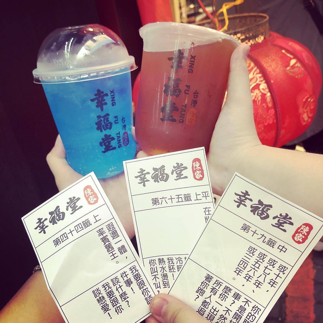 幸福堂的每款茶饮命名也十分“有梗”,,“抹抹暗恋”、“爷爷泡的茶”、“芒着蹦蹦跳”“花开富贵”、“焰遇幸福黑糖珍珠鲜奶”,这些名字读起来俏皮有趣,口感更是非常特别。幸福堂店铺活动上,最有趣的莫过于幸福抽签,这让排队等待的时间不会无聊,每张抽签都有着特别的意义,不少网友认为这是收获了双倍的“幸福”。