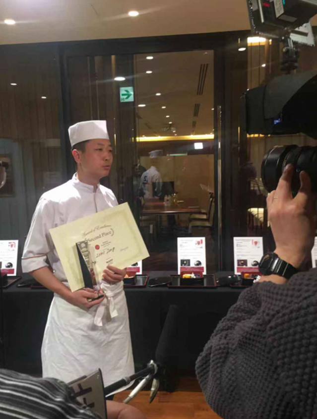 在2019年1月由日本农林水产省举办的第六届“日料世界挑战赛”中,在面向全世界的比赛中,仅有六位入选厨师,受邀至东京来展开最终的角逐,向全世界展示他们做日本料理的精湛烹饪技巧和敏锐细腻的感悟能力。
