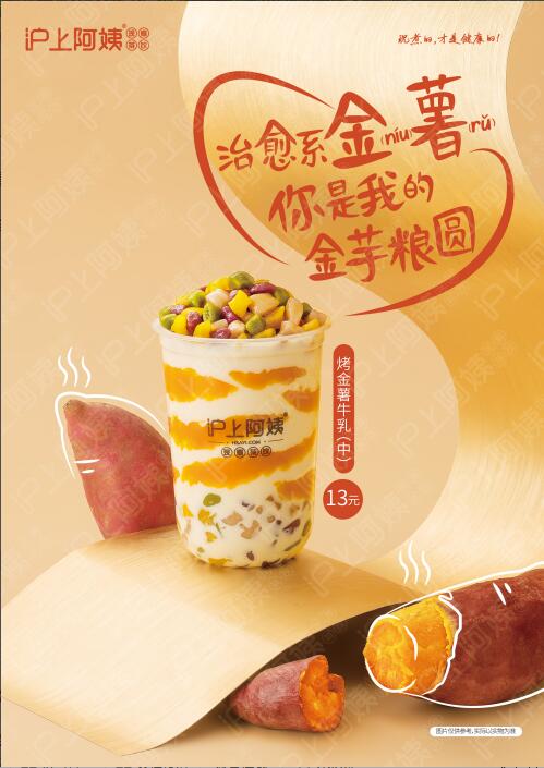 谈起创新,“烤风味”的茶饮了解一下?在沪上阿姨2019年新品中,烤金薯牛乳的灵感就来源于小时候路边烤红薯的记忆,尝一口就是香甜软糯的口感。烤金薯和牛乳的双剑合璧,醇香扑鼻。再搭配丰富弹滑的现煮芋圆,满满的谷物健康,势要成为茶饮榜上的高级玩家。