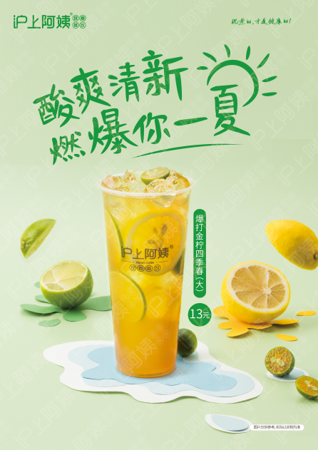 新颖的爆打新鲜金柠手法,让饮品果香四溢,只在沪上阿姨点一杯爆打金柠四季春即可体验到。新鲜柠汁与茶的充分融合之余,饮品中还会放入未压榨的金柠,提升饮品颜值,让新鲜的金柠不光喝得到也看得到。