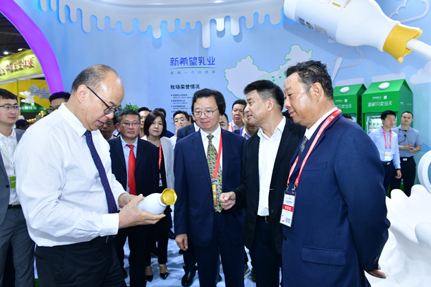 当日展会上,农业农村部党组成员、中国农科院院长唐华俊院士、四川省委常委、省直机关工委书记曲木史哈、四川省副省长尧斯丹、成都市委副书记、市长罗强、四川省农业农村厅厅长杨秀彬等参会领导莅临新希望乳业展区,新希望集团董事长刘永好、新希望乳业副总裁林永裕向与会的农业专家、企业家们介绍了集团近年来科技转化成果,参观了新希望乳业充满科技能量的重磅力作——黄金24小时,了解产品背后凝结的科技因子。