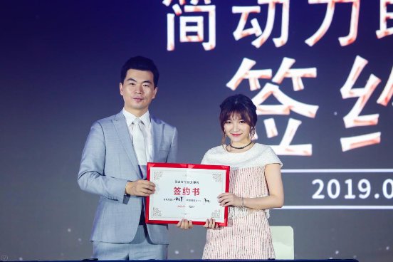 (图:乐尚集团创始人唐忱签约简动力)