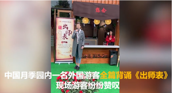 “没想到这位外国友人能用中文背诵《出师表》,说明咱中国的传统文化在国际上的影响力越来越大,这真是非常值得高兴的一件事。”该负责人表示。