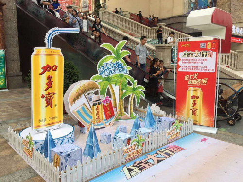 为了能让消费者在五一出行时与加多宝品牌进行近距离亲密互动,加多宝提前全面布局,对景区、商圈等人流密集场所进行了点对点的品牌布建,不仅全力保障市场铺货,更以“冰爽夏日 畅饮加多宝”为主题举办了形式多样的线下趣味互动,在年轻消费者中疯狂圈粉。
