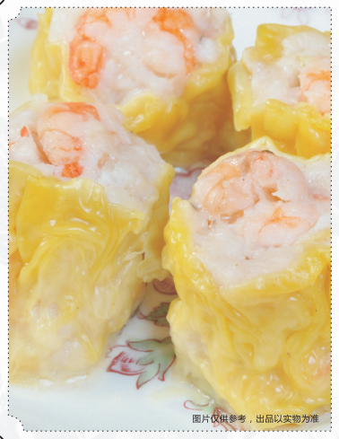鲜虾干蒸是南方人非常喜欢的一道菜,也是早茶必点的人气点心之一。但蒸制时非常讲究技巧,一旦蒸得不好就会有冷凝水滴落虾干,卖相不好看,口感也会受影响。同样地,我们先准备好食材,取一张烧麦皮包入适量肉馅,捏成烧麦形状,放在蒸盘上,接着把蒸盘放入蒸烤一体机,选择蒸模式,温度设置为115℃,时间大概在14~17分钟即可。