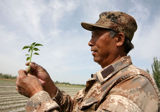 黝黑发亮的脸庞,1.68米的个头,两鬓花白,谈起农业津津有味,5月3日,笔者在新疆生产建设兵团第二师二十七团四连的一块黄土地里初识蒲勇章,他正带领大伙儿热火朝天地忙着种植辣椒,谈话不时被他人问话而打断,勤奋、中肯、专业是他给笔者的第一印象。