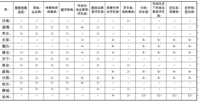 (2019年山东省国家水生动物疫病监测任务分解表)