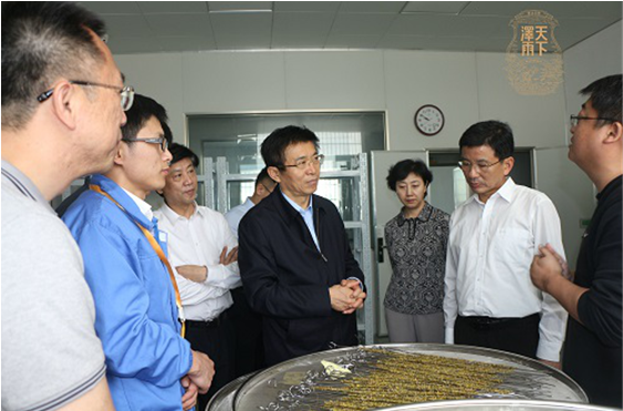 4月25日,国家中医药管理局局长于文明,国家中医药管理局科技司司长李昱,国家中医药管理局医政司司长蒋健等一行在安徽省卫健委党组书记单向前、安徽省卫健委副主任董明培的陪同下,莅临霍山县天下泽雨公司调研,并先后实地查看了公司药厂和霍山石斛石上林下种植基地,了解了霍山石斛的生产、加工和种植情况。天下泽雨公司卢董事长和杨涛总经理以及基地员工代表陪同参观。
