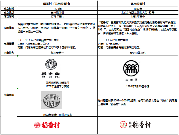 ▲苏州稻香村与北京稻香村品牌概况对比图