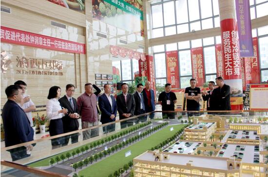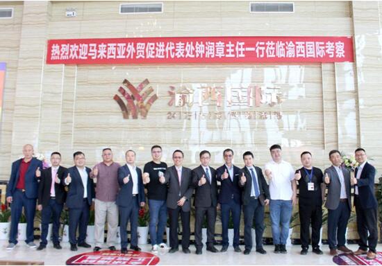 2019年5月14日,马来西亚外贸促进中心成都代表处钟润章主任携马来西亚龙头企业一行12人来荣交流对接渝西国际冷链物流港,推进东盟展览展示馆落地渝西国际,打造马来西亚榴莲、棕榈油、燕窝等农产品设立国内西南集散地并推动奇化-渝西农鲜全球通项目合作。区人大常委副主任邓启才、区农业农村委员会副主任黎忠玲、区农业农村委员会招商办主任姜齐兵、渝西国际董事长胡玉岗、总经理饶华、常务副总经理宋燕春陪同接见。
