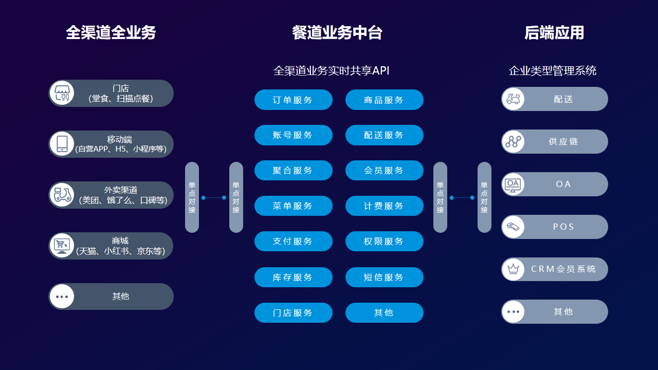 基于这种情况下,餐饮企业期望借助信息化智能化的产品,帮助商家打破这一局面,餐道推出的全渠道管理SaaS平台+ 业务数据双中台,以连接器思维服务餐饮企业,正迎合市场和商家需求,实现进一步帮助商家提升效率、降低成本、完善消费体验。