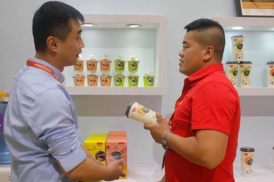 生和堂携着最新跨界新品——“奶茶控の小鲜萃”花系列和“MIX龟苓配”强势登陆魔都,传统配方加上现代化工艺技术,成功赋予龟苓膏“时尚”属性,一下子便引爆了全场的热情。其中新品“奶茶控の小鲜萃”的花系列最受欢迎,奶茶口味加上淡淡的花香,口感一流,时尚年轻人的挚爱之选;“MIX龟苓配”则是一款将咖啡、抹茶这些颇受小资人士欢迎的口味与龟苓膏融合在一起,口感独特、时尚有格调,满足白领人群高端需求。试吃的参展观众络绎不绝,各大精英代理商更是蜂拥而至。不少代理商已经蠢蠢欲动,将这款富有潜力的爆品尽快收入囊中。