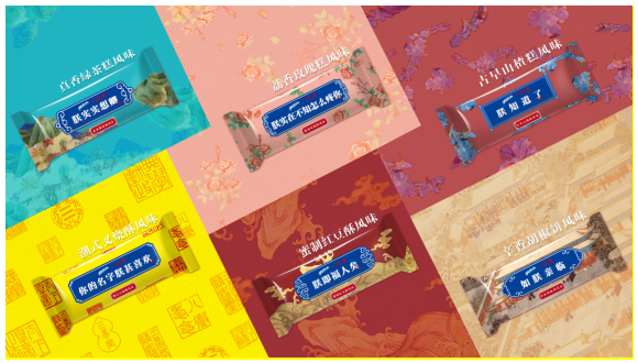「蜜制红豆酥风味」寓意诗人吟哦的相思红豆,采用慈禧太后心爱的芸豆卷馅料;「荔香玫瑰糕风味」中的玫瑰则不仅是宫廷专宠,更传说是康熙大帝的挚爱;「古早山楂风味」中的山楂在宫廷的走红,则要从宋光宗时期说起,传闻宫中贵妃的厌食症便是由它所治愈;「真香绿茶糕风味」便是以文人偏爱的国饮绿茶入主宫廷为灵感,宫中君臣以茶代酒的佳话也印证了绿茶在宫廷的地位;「潮式叉烧酥风味」则是对“岭南遗珠”潮式叉烧的一大改良,这味御膳佳品百姓以往只年节才能吃到;带有异域风味的「辛香胡椒饼风味」,其中出自西域的胡椒曾是比肩黄金的名贵香料,只有皇室方可享用。