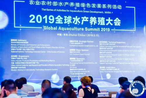 在展会首日同步召开的“2019全球水产养殖大会”上,农业农村部渔业渔政管理局张显良局长,全国水产技术推广总站 中国水产学会崔利锋站长(秘书长)、胡红浪副站长,中国水产科学研究院邓伟副院长,联合国粮食及农业组织(FAO)水产养殖与渔业管理司高级渔业官员MarcioCastroDeSouza先生,广东省农业农村厅高庆营副厅长,珠海市人民政府刘嘉文副市长,珠海市斗门区委常委、斗门生态农业园管委会黄进常务副主任与来自全球主要水产养殖大国的相关领导、水产行业协会负责人、权威专家、企业代表相聚一堂,共议全球水产养殖绿色发展。