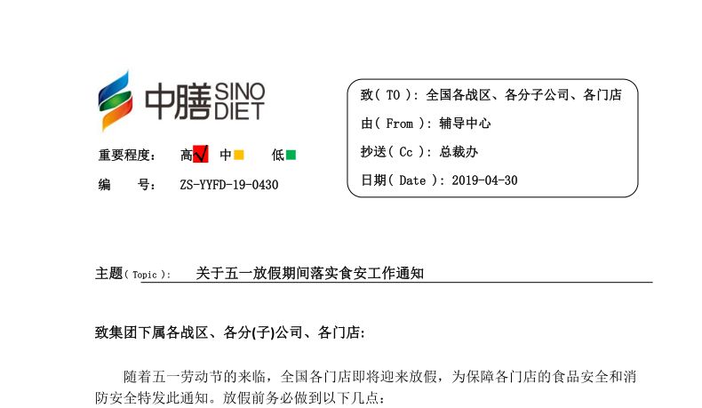 从成立初,中膳就确立了不凡使命——“发展健康食品产业,为大众提供健康餐食“。中膳将一如继往,紧随国家政策,保卫人民大众健康!
