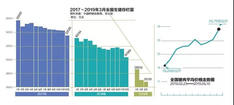 但非洲猪瘟疫情无疑让无肉不欢的局面受到影响。农业农村部称,今年3月,生猪存栏环比下降1.2%,同比下降18.8%;母猪存栏环比下降2.3%,同比下降21%。下降幅度、速度之快,是近十年来出现的最大值。