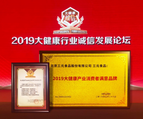 近日,由消费日报主办的“2019中国大健康产业诚信发展论坛暨大健康行业诚信自律倡议行动”在京举办。三元食品荣获2019大健康产业消费者满意品牌奖。这一奖项的获得,是对三元食品在推动中国乳业健康发展中所作贡献的重要肯定。