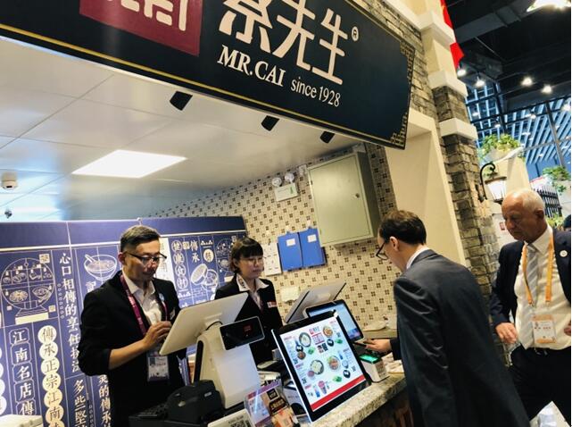 在进博会小吃馆上,一位使用了小白盒的商家表示,有位没有见过小白盒的外国客人,经旁边人一指,很快明白了如何使用。